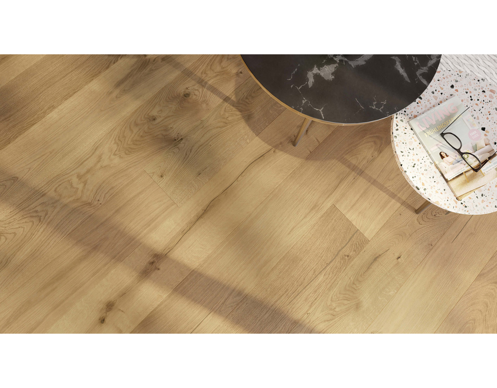Mit der Landhausdiele rustikal in Eiche und Eiche hell legen wir die beiden beliebten Bestseller der Frühjahrsaktion 2025 wieder NEU auf. Die bekannte braune Spachtelfarbe verleiht dem Boden eine große Harmonie und Stimmigkeit.